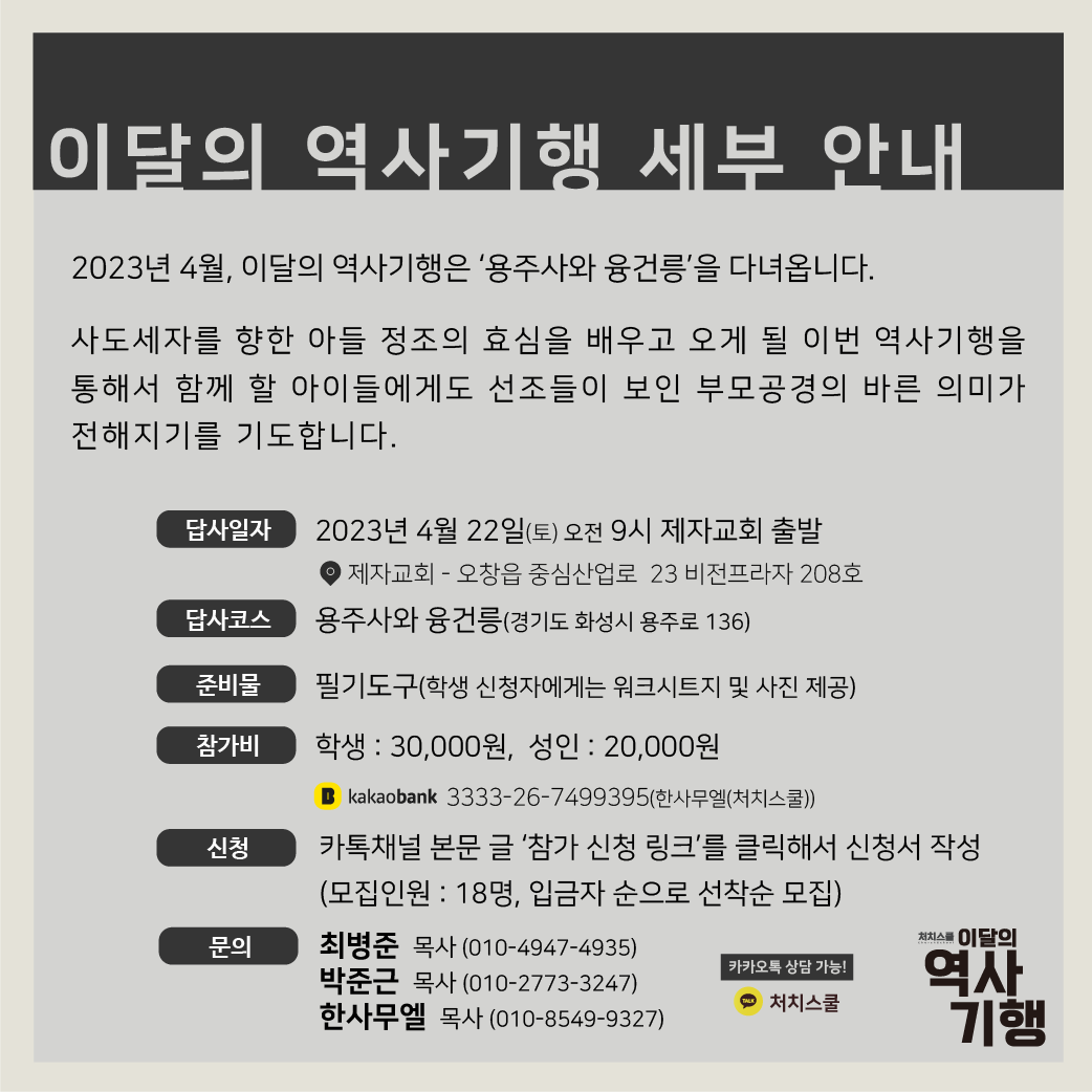 이달의 역사기행(2023년 4월)_용주사와 융건릉-처치스쿨(ChurchSchool)